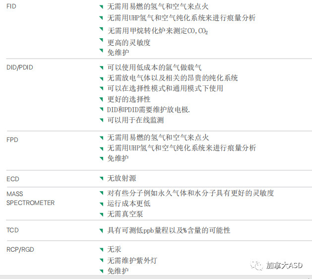 增強等離子體放電技術(shù)可以代替許多形式的檢測器,詳見下表